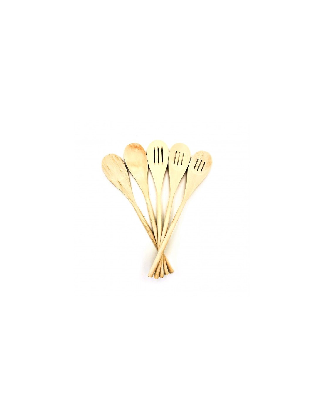 Un set elegante e funzionale con 2 cucchiai e 3 scolini in legno naturale da 30,5 cm, ideali per ogni cucina.